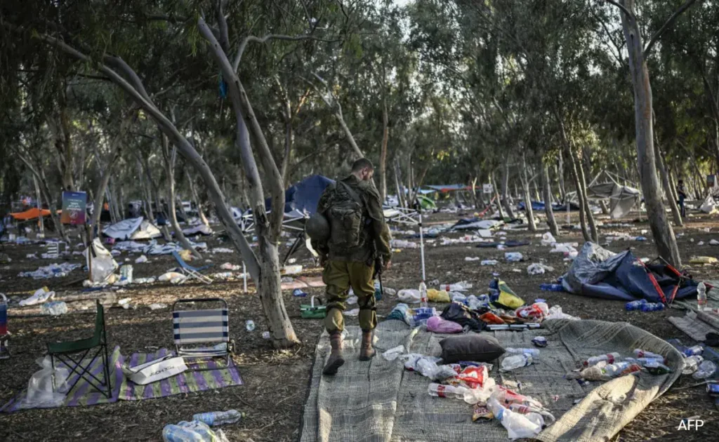 At Kibbutz Nir Oz, mourners visited the burnt home of the Siman Tov family, killed in the initial assault. Near the Nova music festival site, where nearly 400 revelers were killed and dozens abducted, hundreds gathered at dawn to remember those lost. Photos and flags covered the site, now a national memorial. At 6:29 a.m. — the exact time the attack began — the music stopped for a moment of silence.